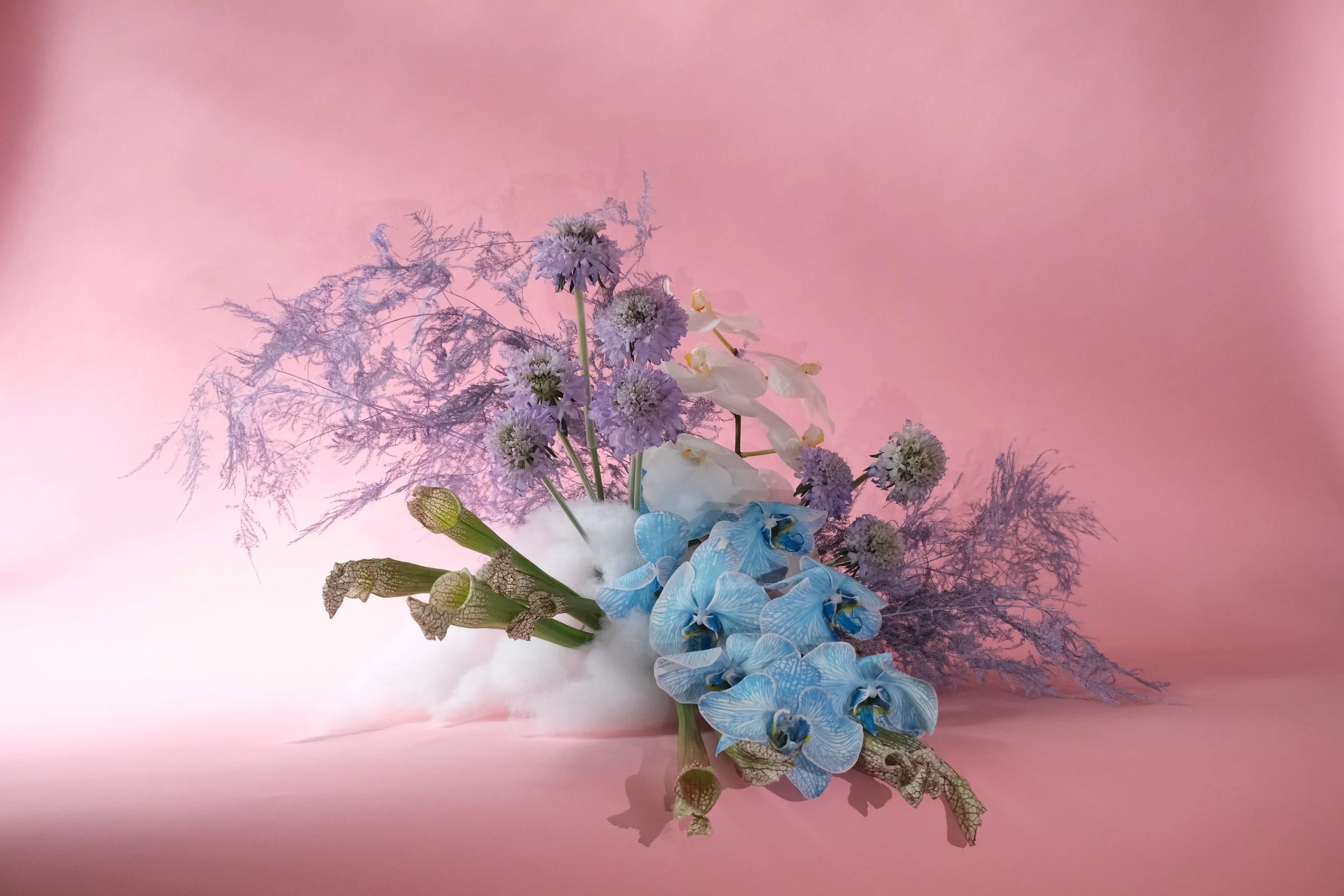Botanical Beauties are a series of floral art arrangements inspired by elemental landscape, anime-infused childhood, fashion, and new-wave naturalism. The arrangements range from botanicals, components foraged from a chinese supermarket, and eccentric elements for maximum surprise.